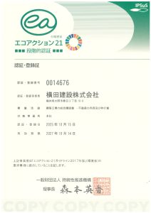 弊社は「エコアクション21」認定企業として、環境負荷の低減と地域社会への貢献を両立させる経営を目指します。